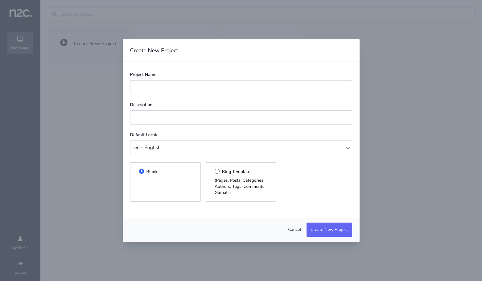 When creating a new project you can choose one of the options. Blank projects don't have any collections or content. Templates are prebuild projects with collections to get you started.