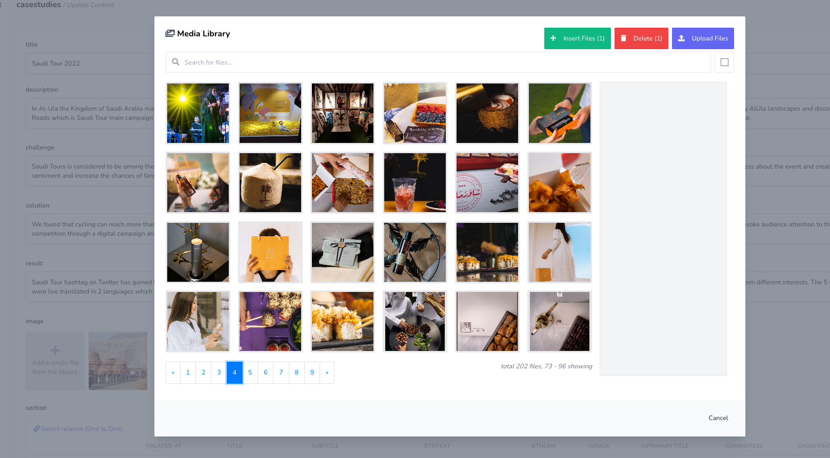 Managing project files is very easy with N2C.'s advanced Media Library. Upload your files and add them to your content.
