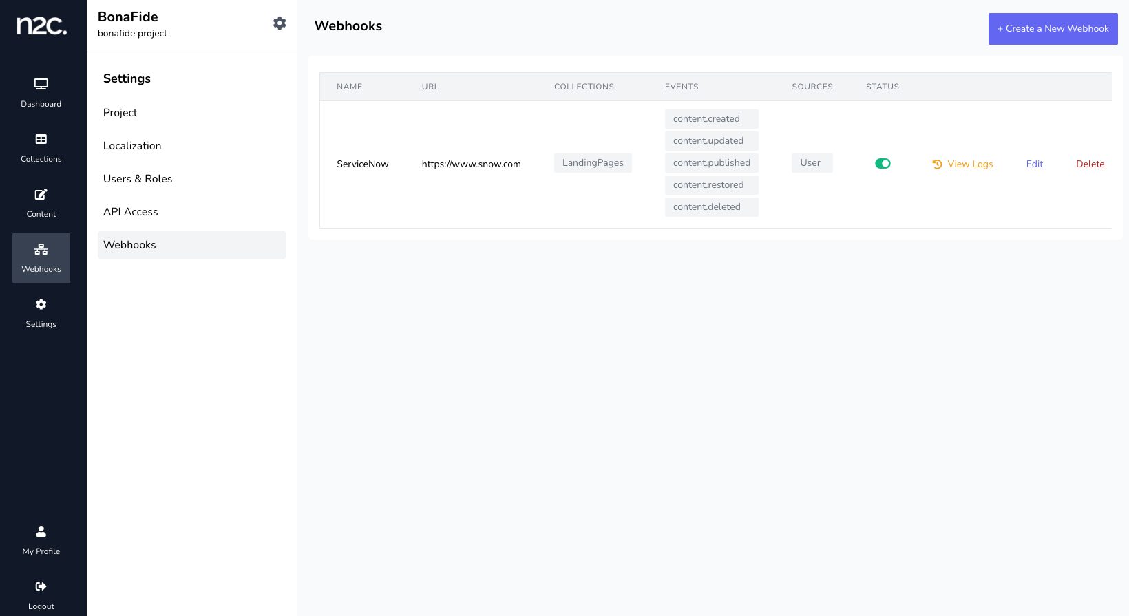 Using webhooks, you can send information about events to third-party applications when new content is created or updated.
