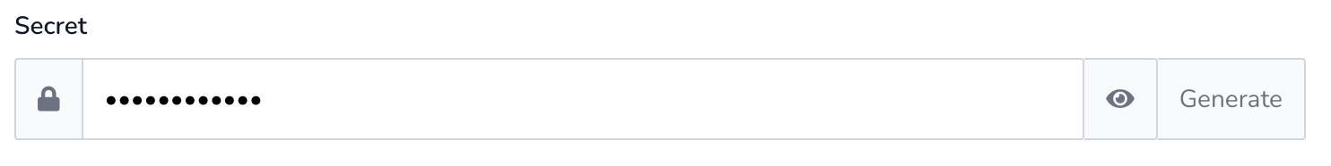 When setting up, it's common to generate, store, and share a secret between your app and the app that wants to receive webhooks. You can generate a secure secret key by pressing the "Generate" button or you can manually create your secret key.